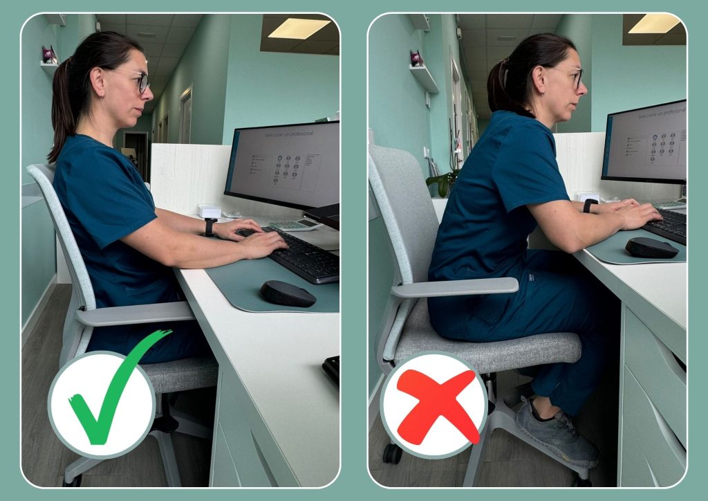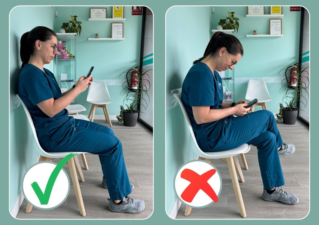 También aconseja que el entorno se adapte a la persona, y no al revés. “La pantalla debe situarse a la altura de tus ojos, los pies bien apoyados en el suelo y los brazos formando un ángulo aproximado de 90 grados. Los hombros deben mantenerse relajados para evitar que el trapecio asuma toda la carga del brazo”. Como nos alerta Laura, “una mala postura digital a largo plazo puede evolucionar hacia patologías crónicas como hernias discales, cervicalgias persistentes o tendinopatías. Además, la postura encorvada reduce la capacidad respiratoria y puede generar bloqueos articulares que limitan la movilidad normal de la columna”.